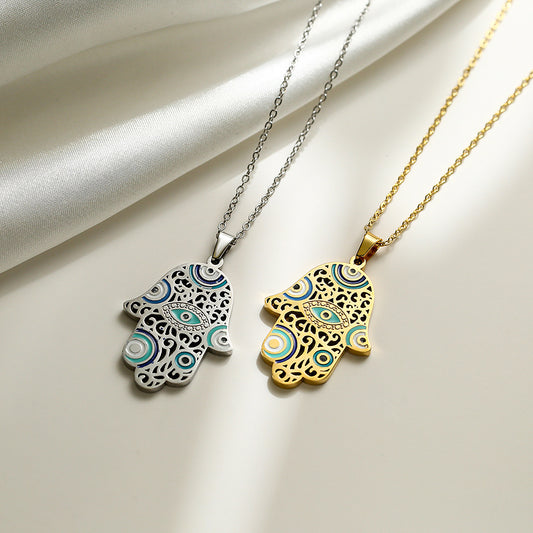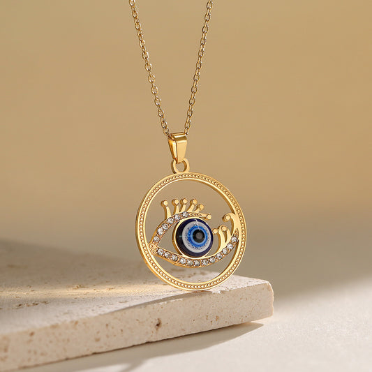 Titanium Steel Evil Eye Shell Pendant Necklace