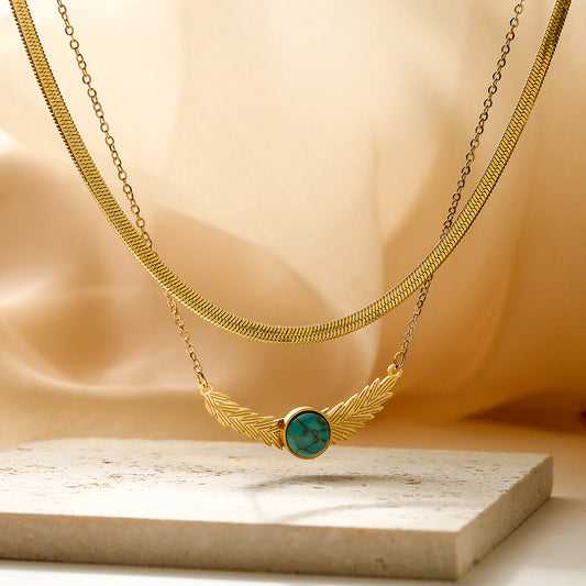 Wings & Heart Evil Eye Pendant 2 Layers Necklace
