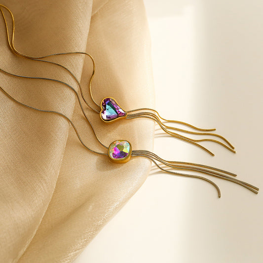 Sun & Heart Tassel Pendant 2 Layers Necklace