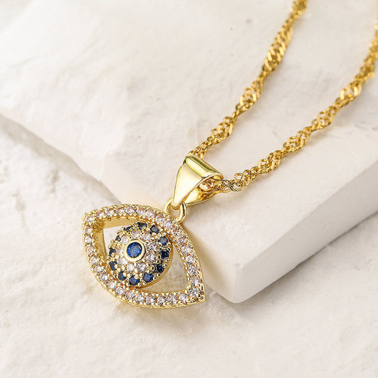 Hollow Evil Eye Full Stones Pendant Necklace
