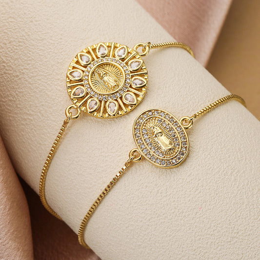 Golden Virgin Mary Totem Disc Pendant Bracelet