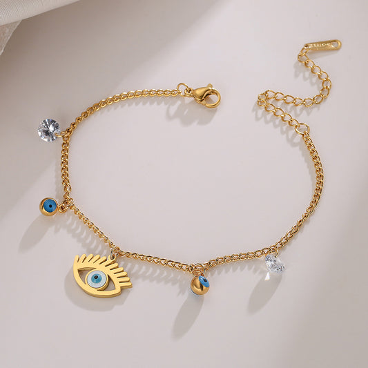 Hollow Evil Eye Color Stones Pearl Pendant Necklace