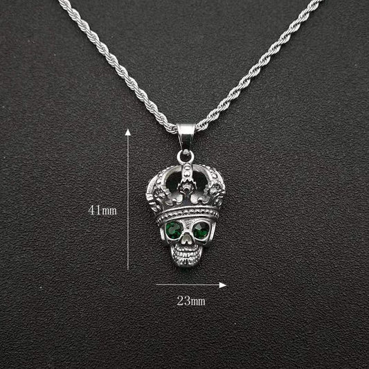 Gold Plated Crown Green Eyes Zircon Skull Undead Pendant