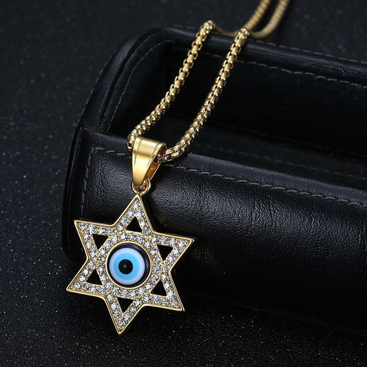 Hip Hop Gold Plated Zirconia Blue Eye Hexagram Pendant