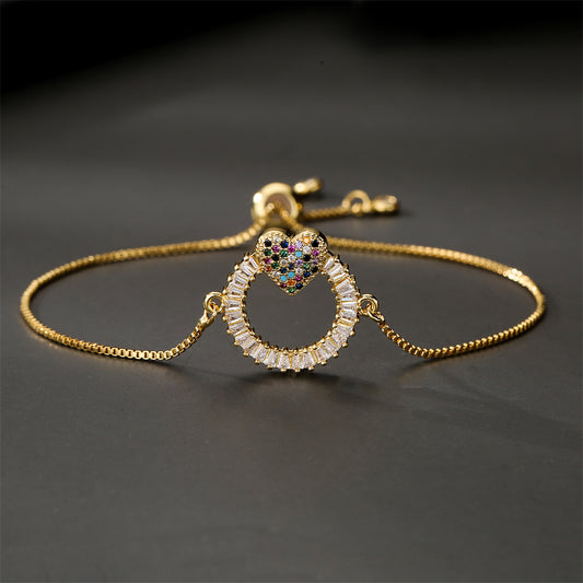 Color Stones Evil Eye & Heart Pendant Bracelet