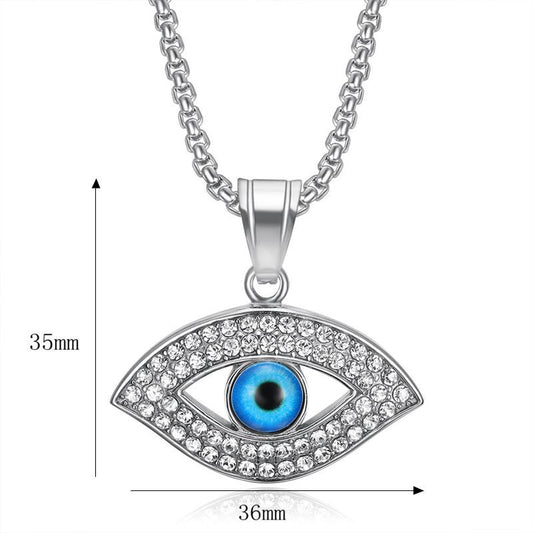 HIPHOP Gold Plated Zircon Blue Eyes Hand of Fatima Pendant