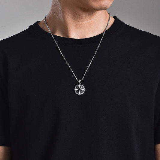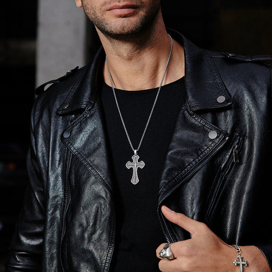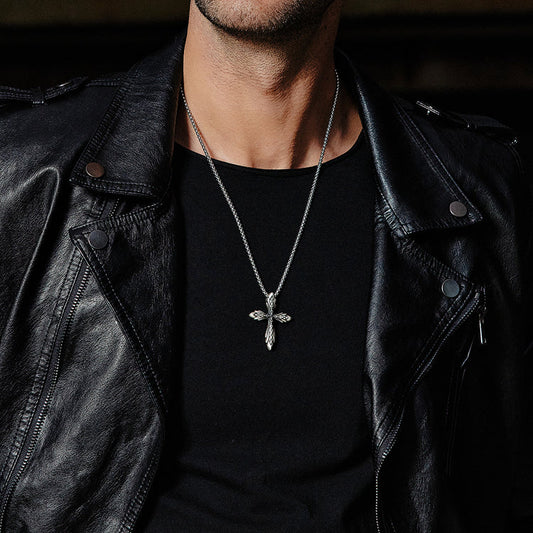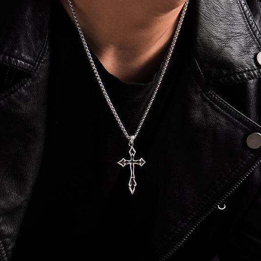Sterling Silver Retro Punk Cross Pendants Necklace