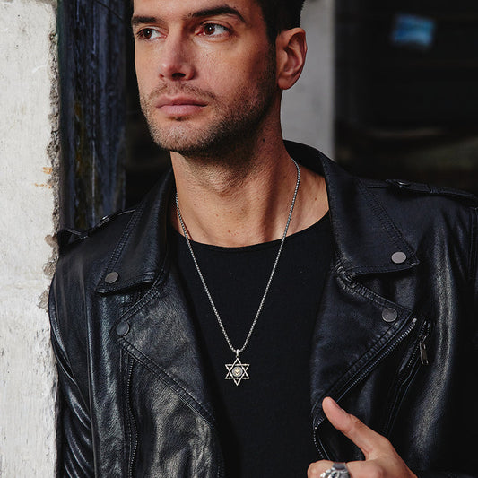 Sterling Silver Golden Skull Hexagram Pendants Necklace