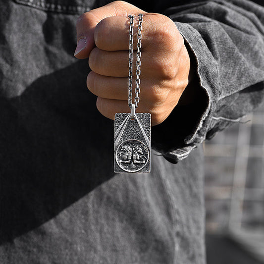 Sterling Silver Vintage Double-Sided Axe Cross Pendants Necklace