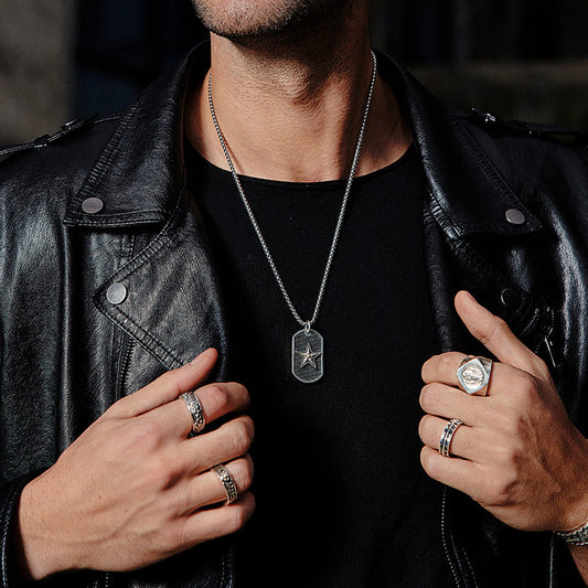 Vintage Sterling Silver Pentagram Military Badge Pendants Necklace