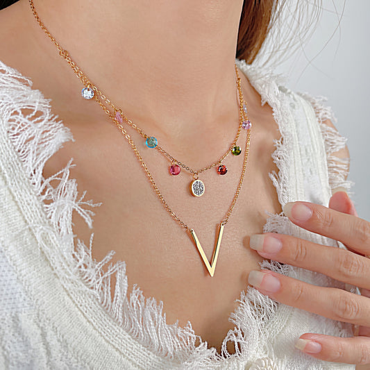 Colored Zircon Pendant Titanium Steel Necklace