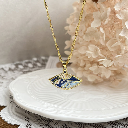 Stylish Folding Fan Pendant Necklace