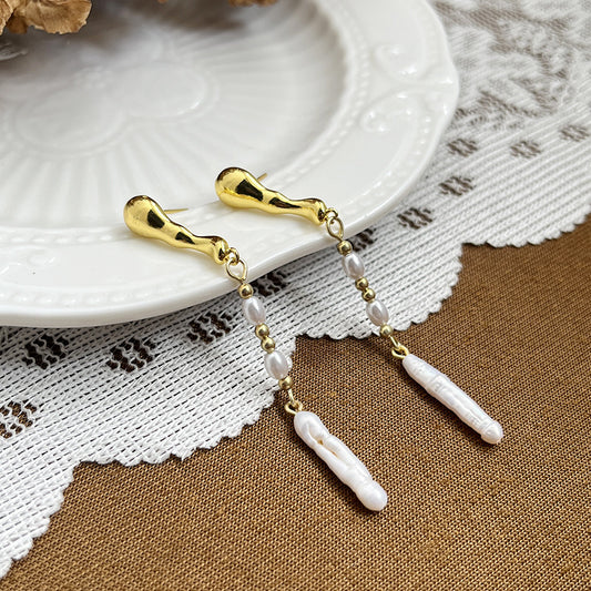 Toothpick Pearl Pendant Niche Design Long Earrings