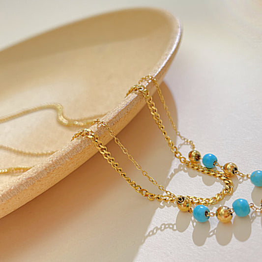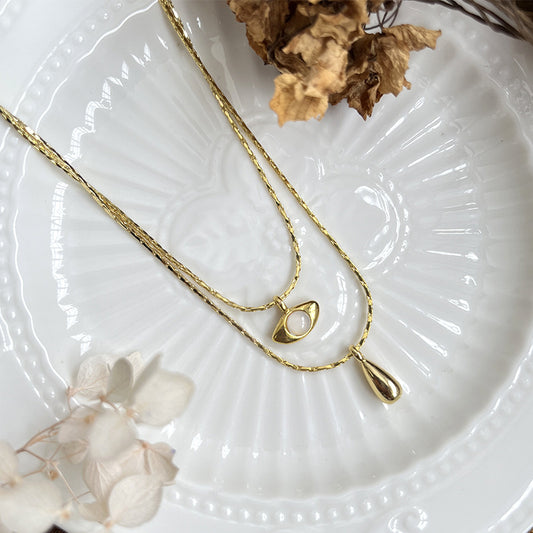 Drop Opal Pendant Double Necklace