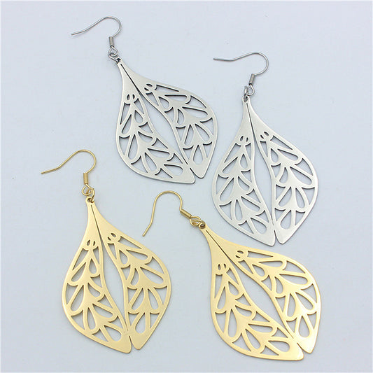 Stainless Steel Double Leaf Pendant with Symmetrical Leaves