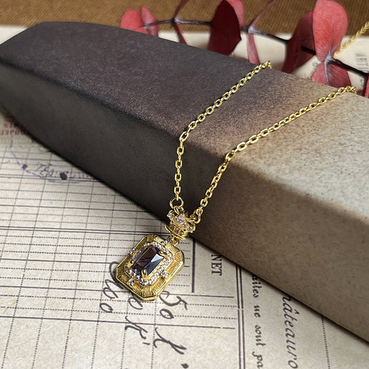 Perfume Bottle Pendant Design Purple Zircon Medieval Necklace