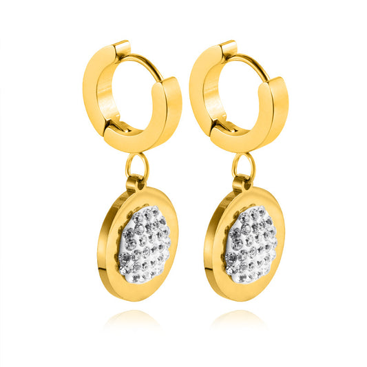 Vintage Round Cake Full of Diamond Pendant Ear Clips