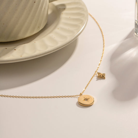 Stainless Steel Round Brand Star Pendant Necklace