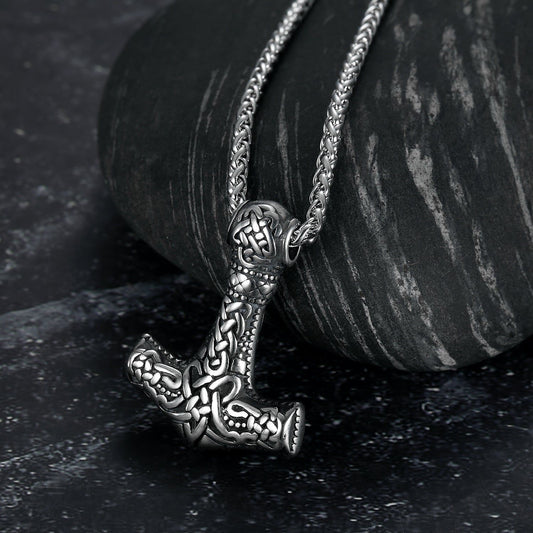 Vintage Viking Thor's Hammer Stainless Steel Pendant Necklace