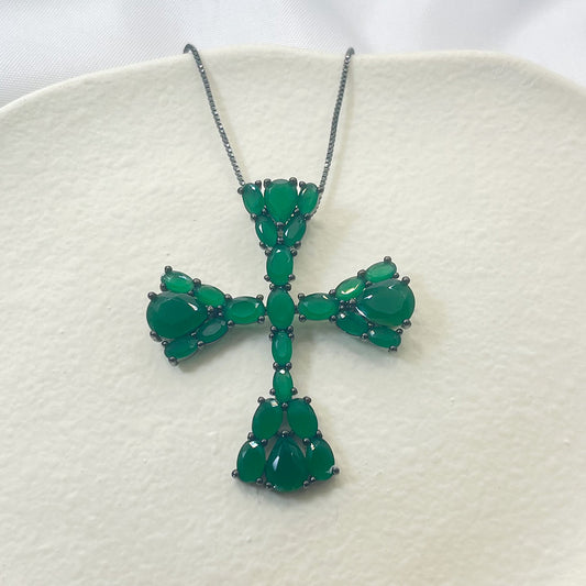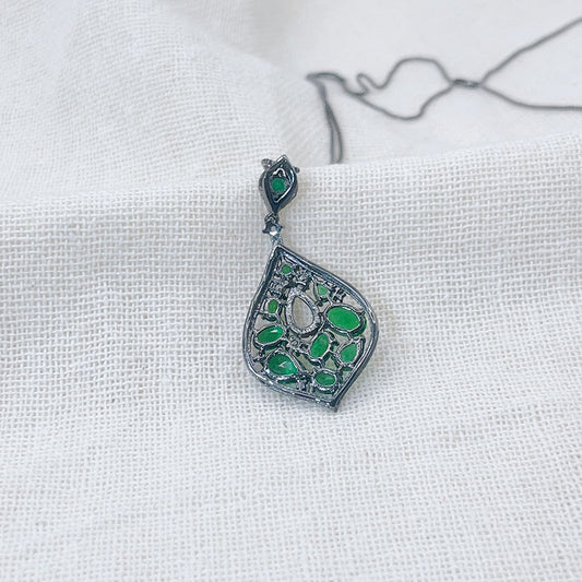 Inlaid Turquoise Green Zircon Pendant Necklace
