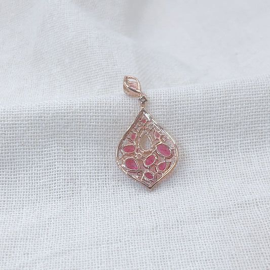Inlaid Pink Sapphire Zircon Pendant Necklace