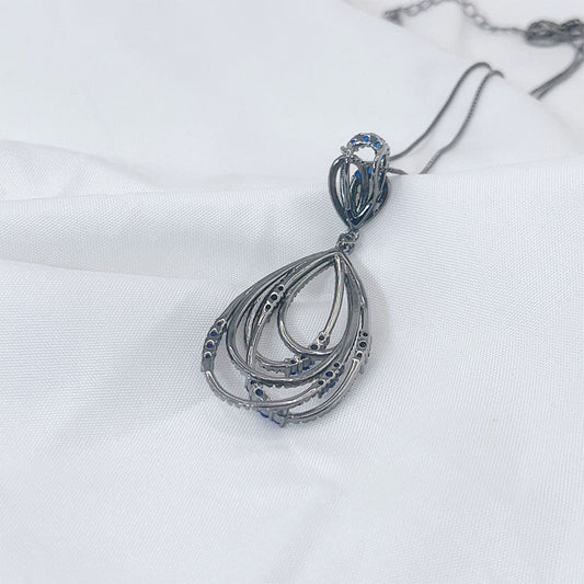 Pear Shaped Water Drop Shaped Blue Zircon Pendant Necklace