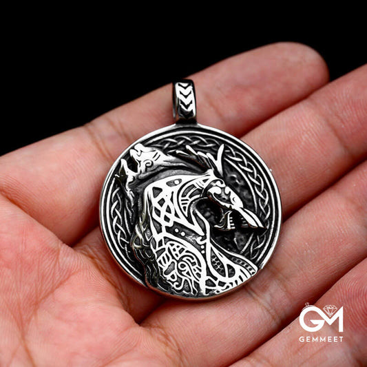 Stainless Steel Double Wolf Celtic Knot Pendant for Men