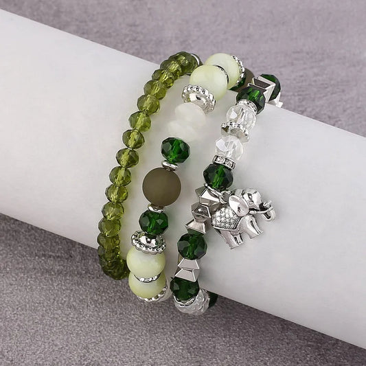 Handmade Boho Yoga Elephant Pendant Bracelet Set