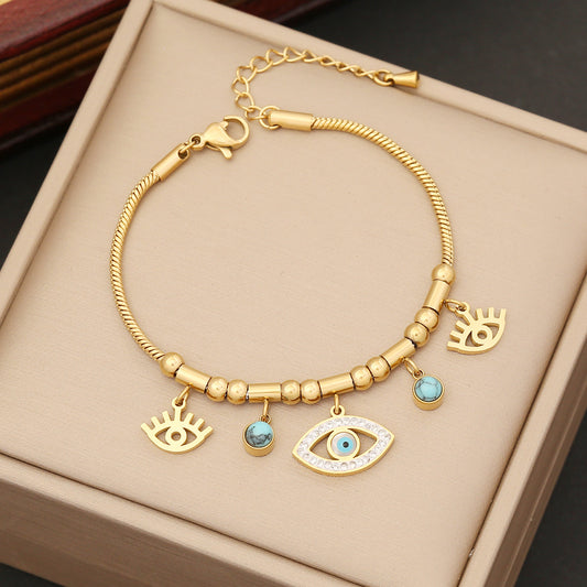 Hollow Evil Eye Golden Bead Pendant Bracelet Necklace & Earrings