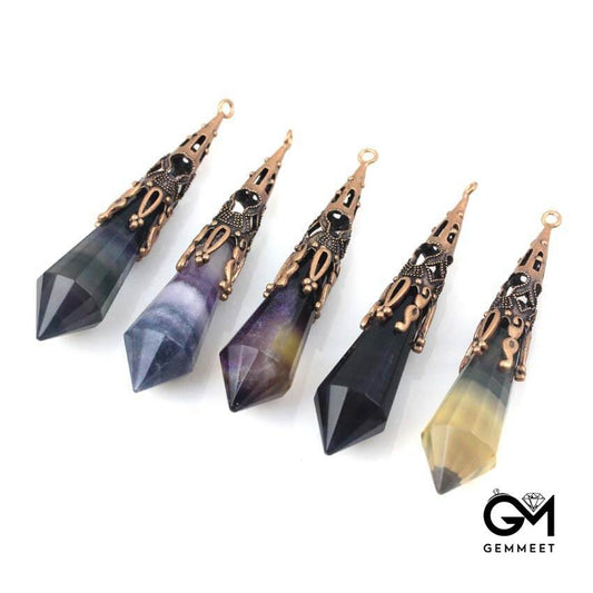 Vintage Color Fluorite 12 Sectional Conical Spirit Pendant