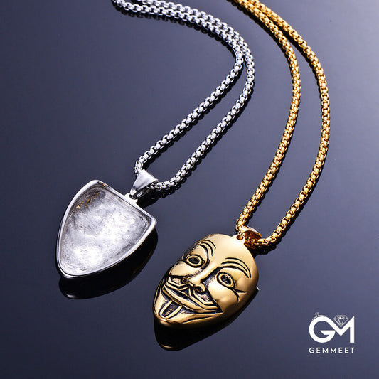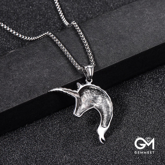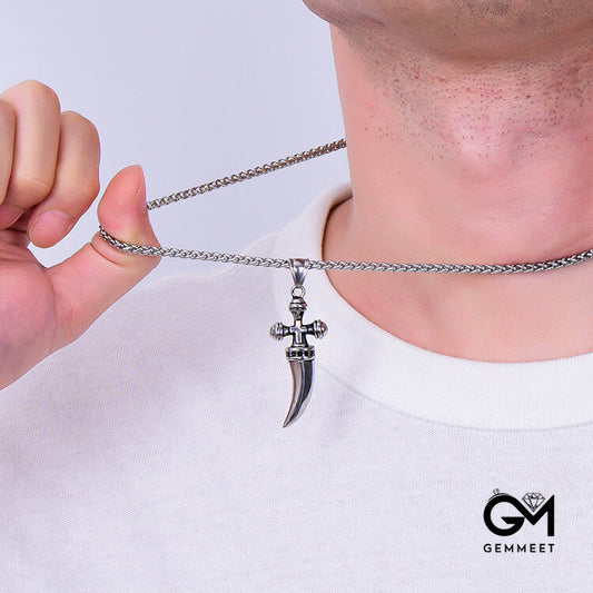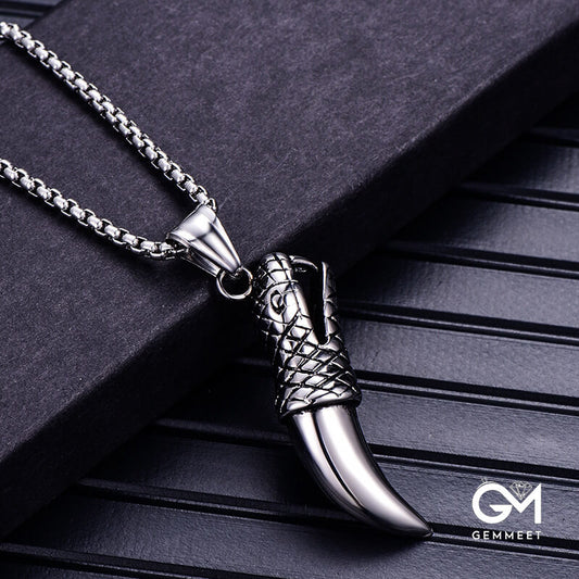 Vintage Stainless Steel Bone Tooth Pendant Necklace