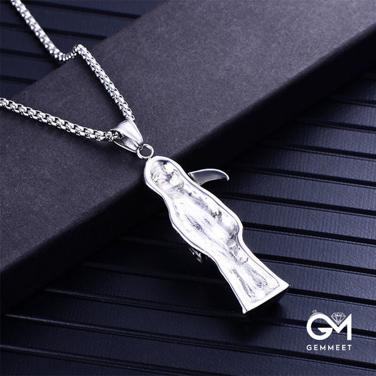 Stainless Steel Vintage Reaper Sickle Pendant Necklace
