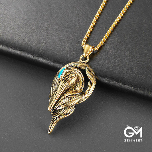 Titanium Steel Red-crowned Crane Pendant Necklace
