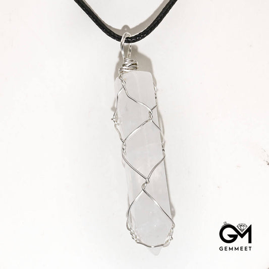White Crystal Hexagon Column Wrapped Pendant Necklace