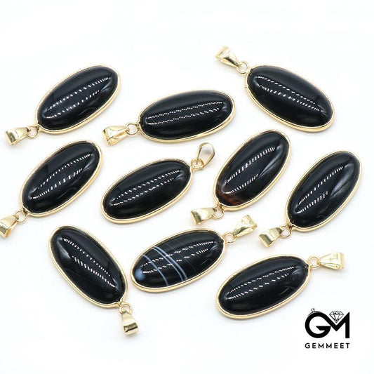Black Shell Crystal Agate Alloy Stone Pendant Necklace