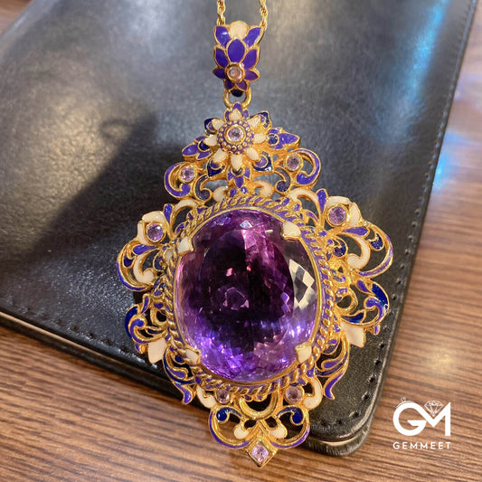 Vintage Gilt Enamel Color Amethyst Ring Pendant Necklace