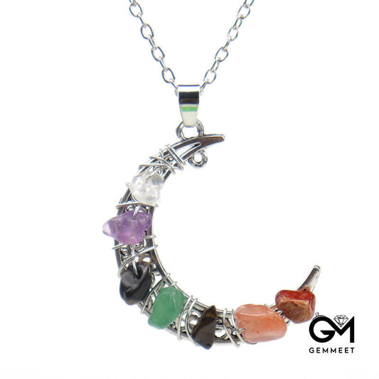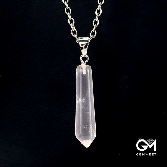 White Crystal Hexagon Pointy Cone Pendant Necklace