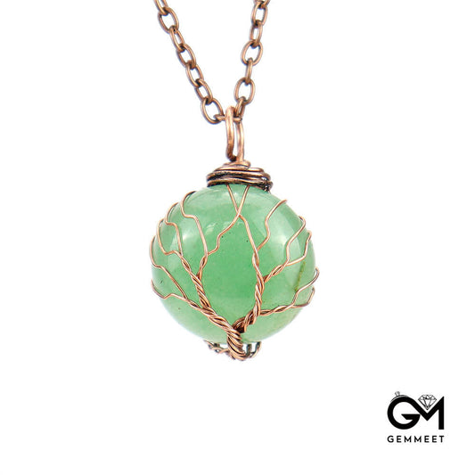 Crystal Circle Wrapped Tree of Life Pendant Necklace