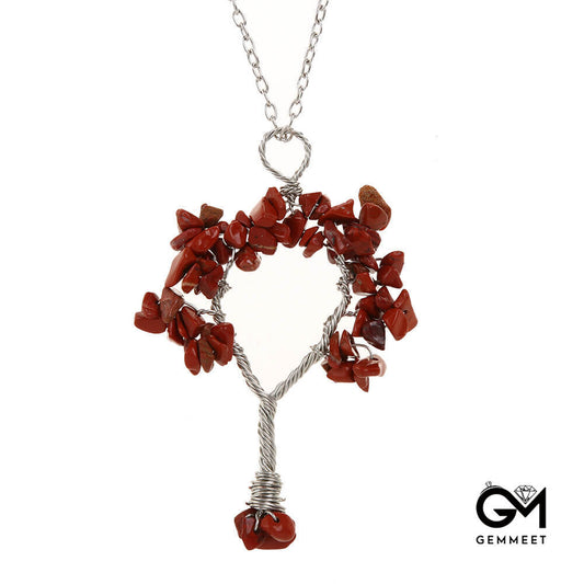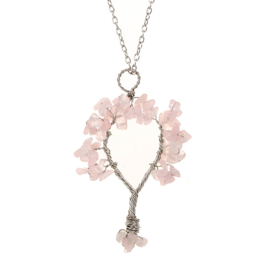 Irregular Crystal Pillar Tree of Life Pendant Necklace