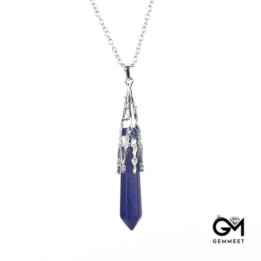 Crystal Single Point Hexagon Pyramid Pendant Necklace