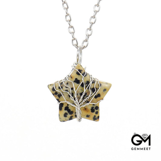 Crystal Pentagram Wound Tree of Life Pendant Necklace