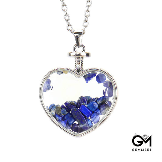 Heart Cut Pendant Gravel Polished Drift Bottle Necklace