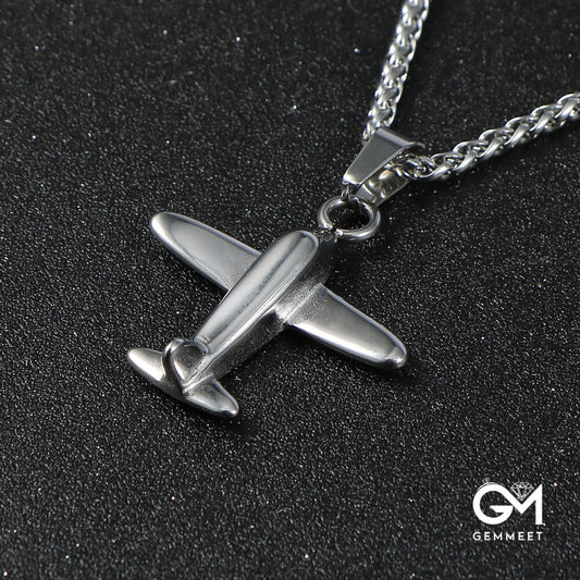Stainless Steel Aircraft Pendant Mustang Fighter Necklace