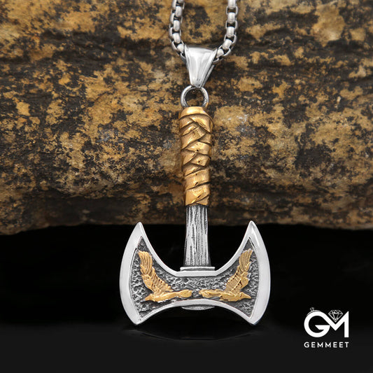 Viking Raven Axe Titanium Steel Pendant Necklace