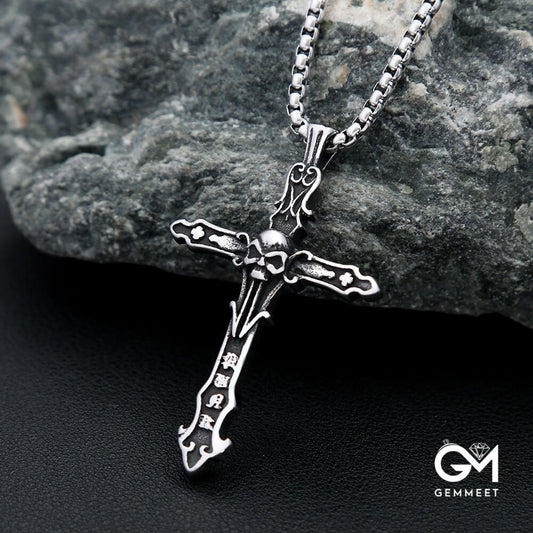 Stainless Steel Vintage Cross Skull Pendant Necklace