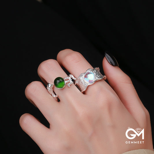 Green Crystal Colored Irregular Opening Ring