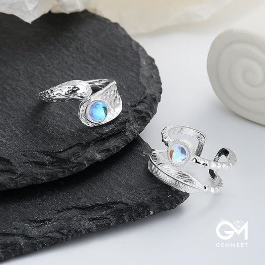 Double Opening Feather Irregular Moonstone Ring