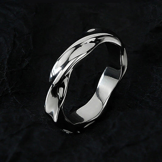 Adjustabl Distorted Texture Mobius Ring