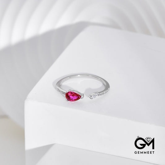 S925 Sterling Silver Rose Red Zircon Heart Open Ring