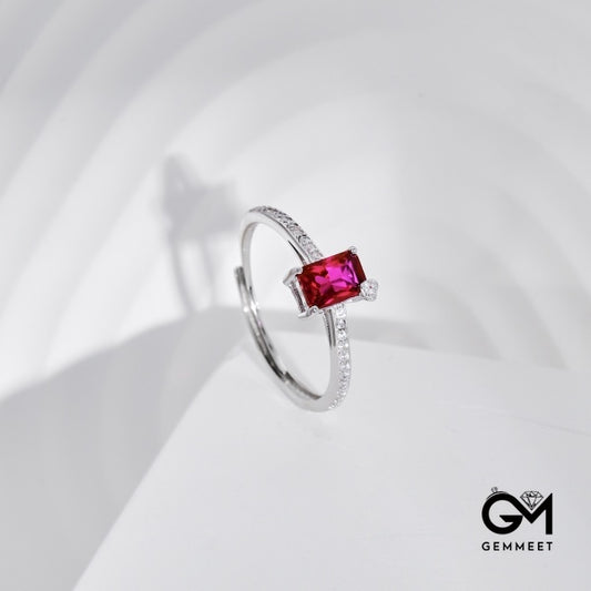 S925 Rectangular Red Zircon Temperament Ring